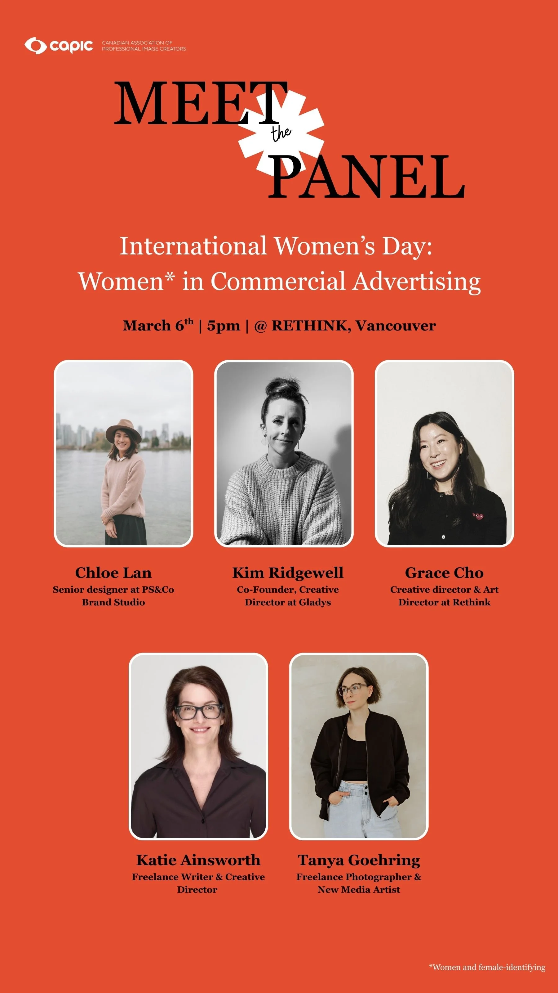 This event welcomes women working in commercial advertising, photography, and production*, at any stage of their career — from emerging creatives to industry veterans.